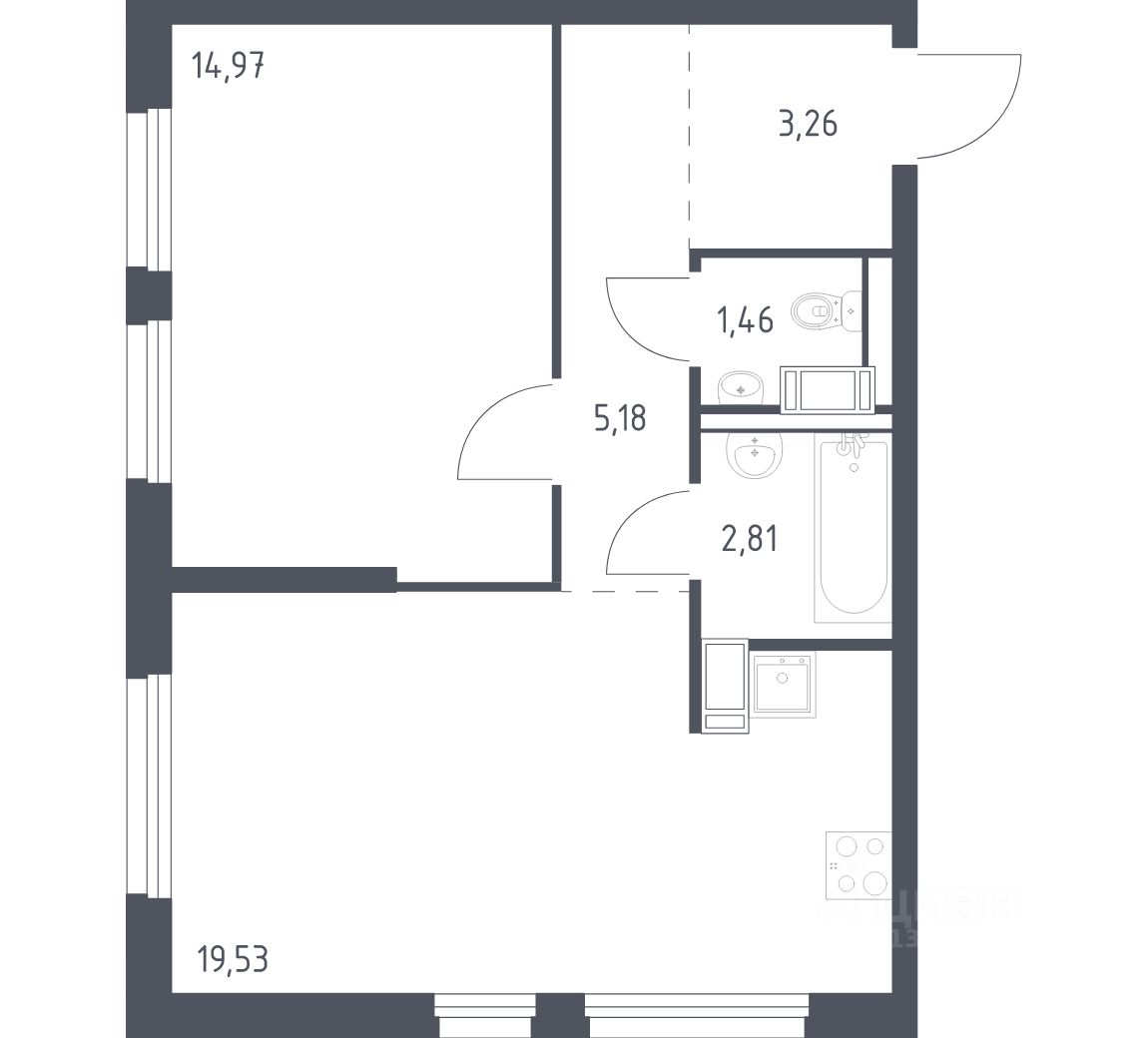 Квартира без отделки. Доступность опции "отделка" и возможность комплектации мебелью и декором уточняйте у застройщика.