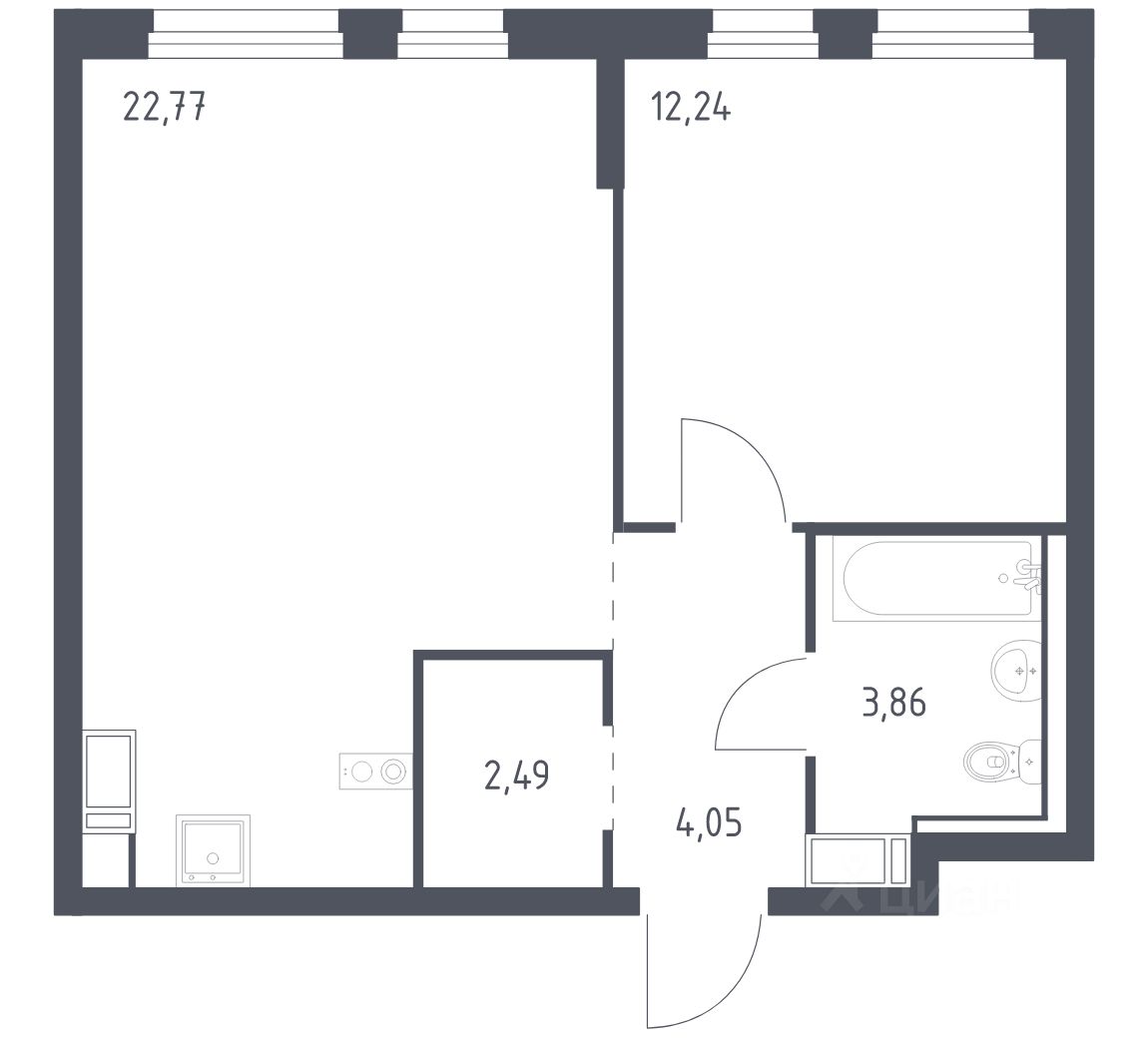 Квартира без отделки. Доступность опции "отделка" и возможность комплектации мебелью и декором уточняйте у застройщика.