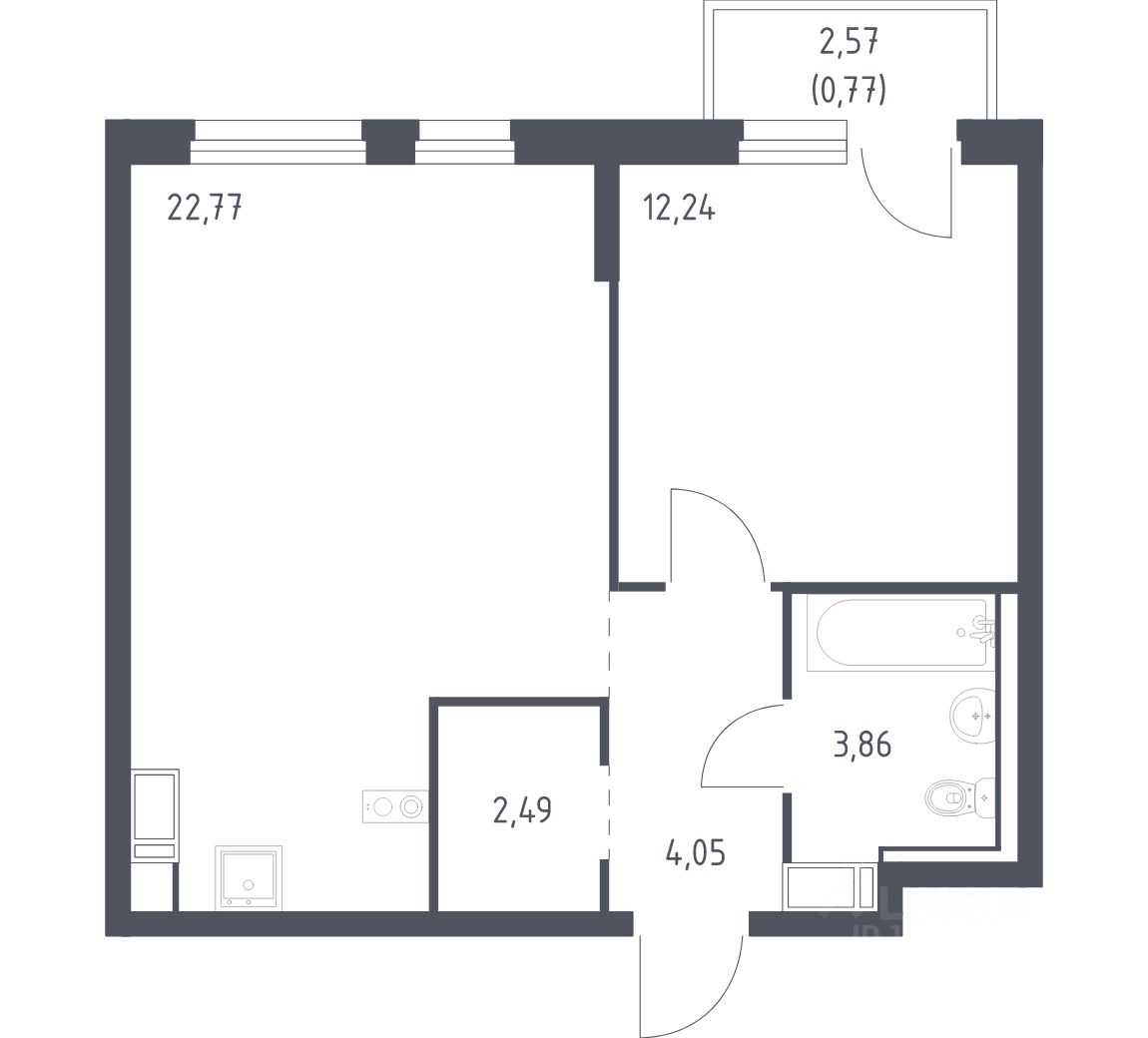 Квартира без отделки. Доступность опции "отделка" и возможность комплектации мебелью и декором уточняйте у застройщика.
