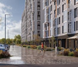 Архитектура жилого комплекса — это воплощение элегантной современности, скандинавской простоты и функциональности. Большие окна — важная часть дизайна комплекса. Они формируют единый гармоничный облик комплекса, а еще пускают много дневного света в квартиры и делают их более объемными.