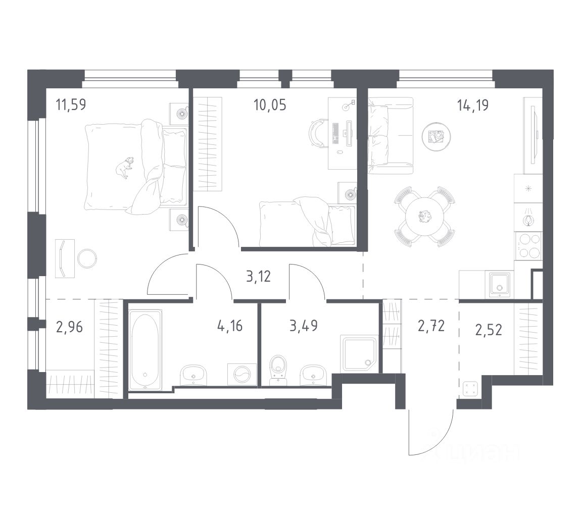 Общая площадь54,8 м²