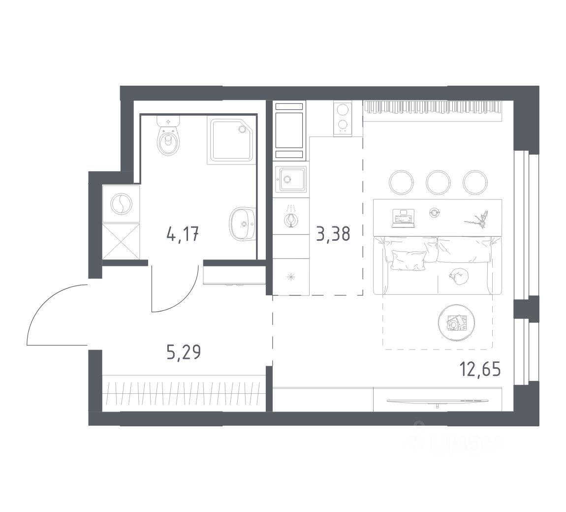 Общая площадь25,49 м²
