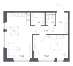 Строим кварталы для жизни с заботой о будущем. Предлагается 1-комнатная квартира комфорт-класса площадью 46,99 кв.м в корпусе 35.1 на 2-м этаже, в жилом комплексе "Новое Колпино".