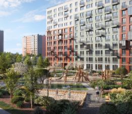 Дворы в квартале — приватные, без машин, с зелеными островками и зонами для отдыха. Вокруг школы проложен зеленый бульвар с велодорожкой. Дома высотой 11 этажей отличаются стильным фасадом в теплых оттенках с французскими балконами. В парадных — светлые лобби в европейском стиле с безбарьерной средой.