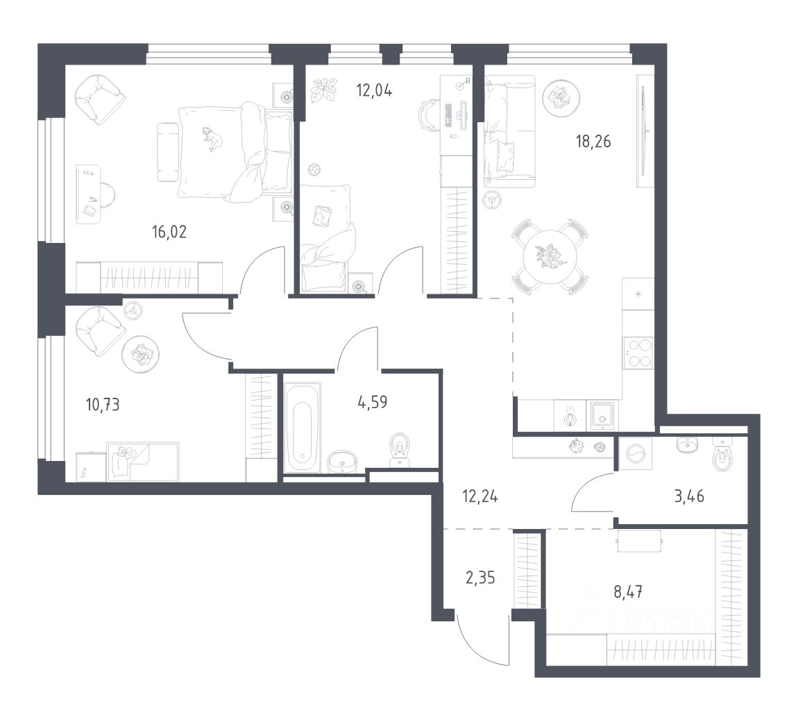 Строим кварталы для жизни с заботой о будущем. Предлагается 3-комнатная квартира комфорт-класса площадью 88,16 кв.м в корпусе 35.2 на 1-м этаже, в жилом комплексе "Новое Колпино".