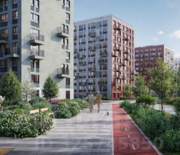 Дворы в квартале — приватные, без машин, с зелеными островками и зонами для отдыха. Вокруг школы проложен зеленый бульвар с велодорожкой. Дома высотой 11 этажей отличаются стильным фасадом в теплых оттенках с французскими балконами. В парадных — светлые лобби в европейском стиле с безбарьерной средой.
