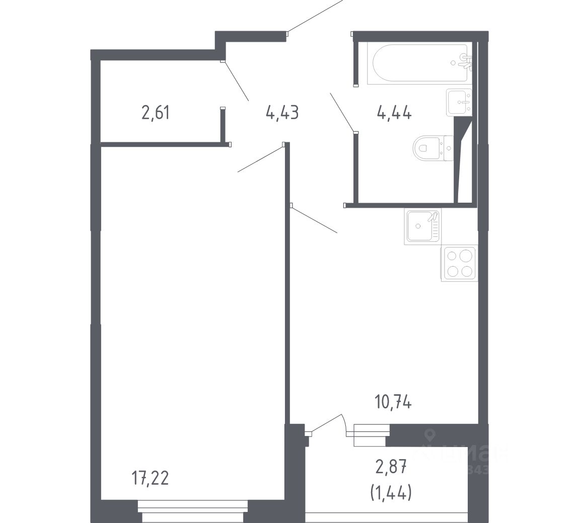 Жилая площадь17,2 м²