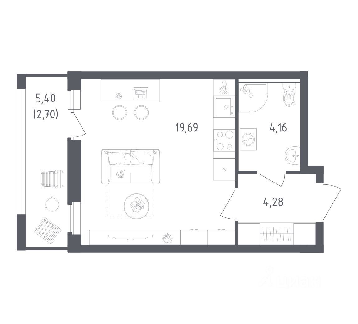 Жилая площадь19,7 м²