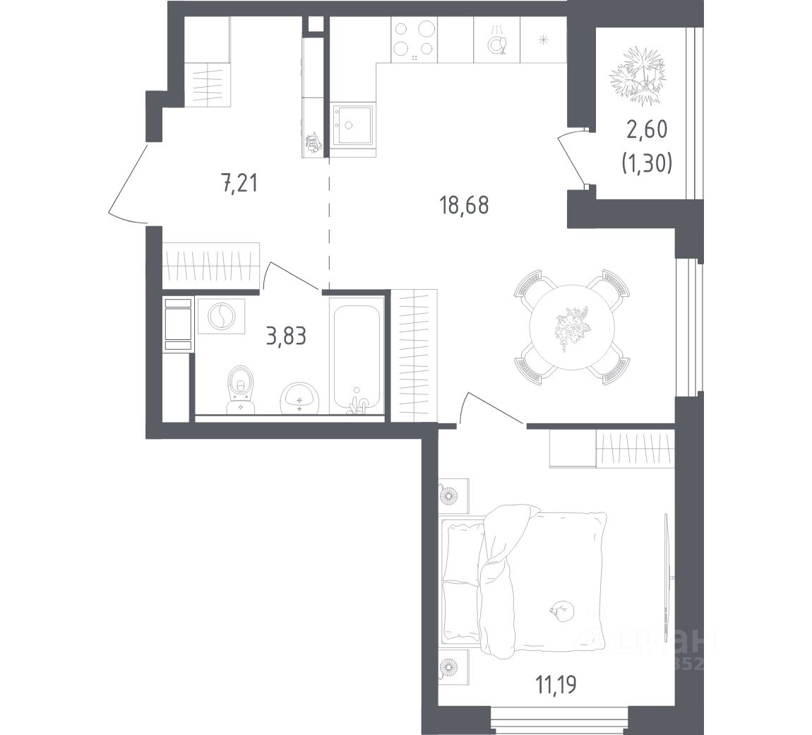Общая площадь42,21 м²