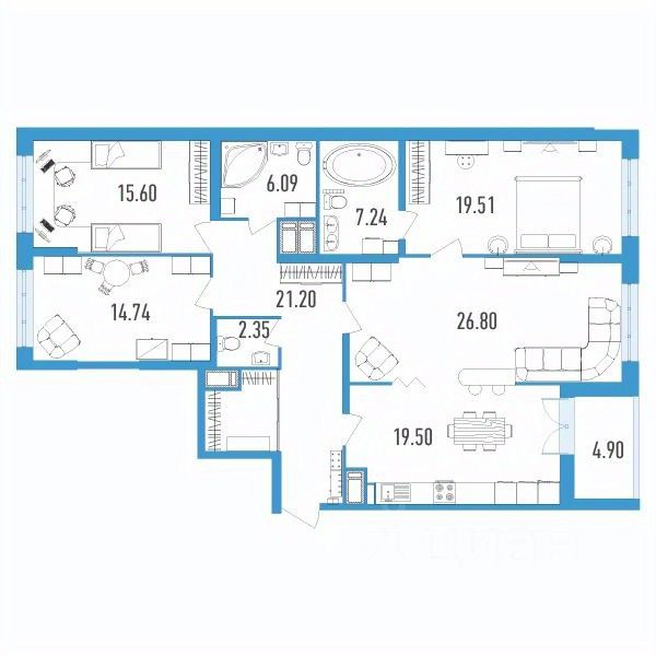 Продаётся 4-комнатная квартира в сданном доме (Головнина, 3к1), срок сдачи: II-кв. 2023, общей площадью 134.5 кв.м., на 7 этаже.