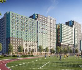 Жилой комплекс включает свою инфраструктуру: школу, 2 детских сада, а также супермаркеты, кафе и салоны красоты на первых этажах.