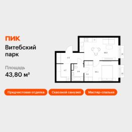 Продаётся 1-комн. квартира площадью 43,8 кв.м на 3 этаже 12 этажного дома (Корпус 6, Секция 2) проекта ПИК Витебский парк. Светлый просторный подъезд на уровне земли, функциональная планировка, большие окна, предчистовая отделка.