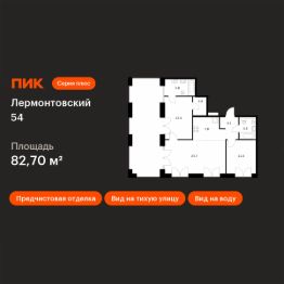 Продаётся 2-комн. квартира площадью 82,7 кв.м на 7 этаже 7 этажного дома (Корпус 1, Секция 1) проекта ПИК Лермонтовский 54. Светлый просторный подъезд на уровне земли, функциональная планировка, большие окна, предчистовая отделка.