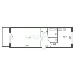 Комната 15,6 метров, прямоугольной формы с балконом.