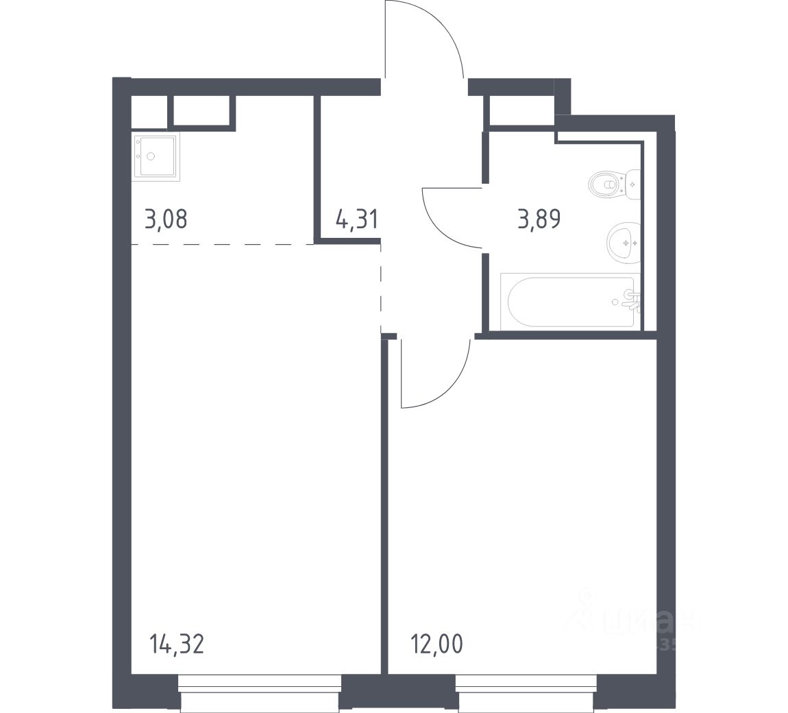 Общая площадь37,6 м²