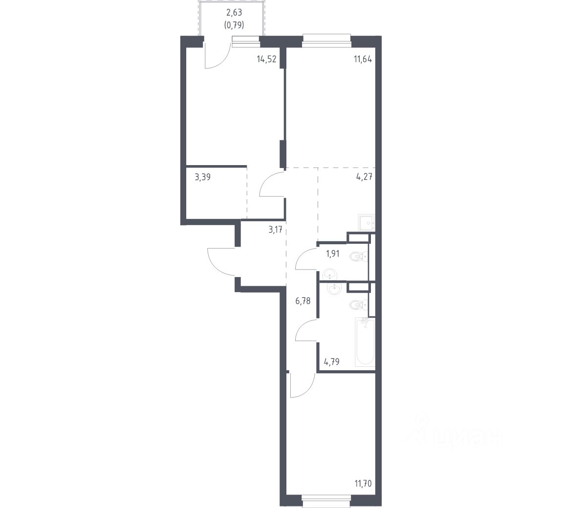 Общая площадь62,96 м²
