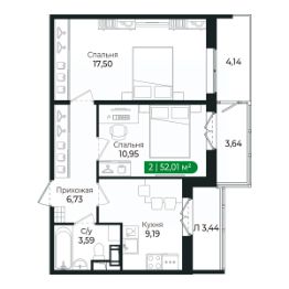 Напрямую продаётся 2 комнатная квартира 278 на 4 этаже (из 8) общей площадью 52,01 м2 в III очереди в жилом комплексе Сертолово Парк от застройщика ГК Алгоритм.