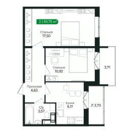 Напрямую продаётся уютная 2-комнатная квартира 261 общей площадью 50,75 м2 во II очереди в жилом комплексе Сертолово Парк от застройщика ГК Алгоритм.