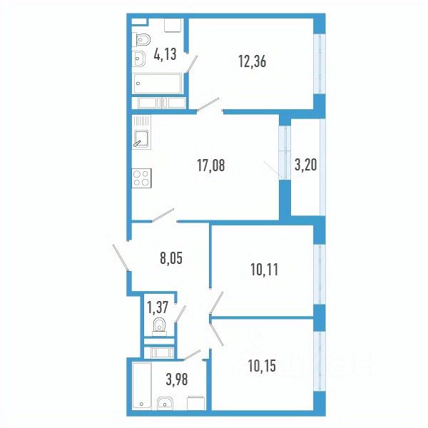 Продаётся 3-комнатная квартира в строящемся доме (Дом 1), срок сдачи: IV-кв. 2027, общей площадью 68.83 кв.м., на 4 этаже. Новый жилой комплекс "Аэросити 7" от застройщика "Лидер Групп" расположен по адресу: Санкт-Петербург, Пушкинский район, посёлок Шушары, ул. Школьная