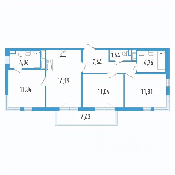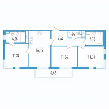 Продаётся 3-комнатная квартира в строящемся доме (Дом 1), срок сдачи: IV-кв. 2027, общей площадью 69.71 кв.м., на 4 этаже. Новый жилой комплекс "Аэросити 7" от застройщика "Лидер Групп" расположен по адресу: Санкт-Петербург, Пушкинский район, посёлок Шушары, ул. Школьная