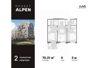 В центре Петербурга на берегу реки Охты представлена 2-х комнатная квартира на 4 этаже общей площадью 70.21 кв.м. Дом бизнес-класса в креативном центре Петербурга на берегу реки Охты и 25 минутах пешком до Невского проспекта и 17 минутах пешком до м. Новочеркасская. Неповторимая и цельная атмосфера места. Река, которая обнимает дома, дышащие фасады из натуральных материалов, парк с родниками и травами во дворе и уникальная пластичная архитектура созвучны характеру современного города. ALPEN - дом твоего равновесия. - Приватные корпуса; - Выразительные фасадные решения; - Декоративная подсветка фасада; - Панорамные террасы с видом на реку Охта; - Квартиры с верандами формата high flat; - Витринное остекление. Внутренний двор, набережная и прилегающие территории образуют цельную эко среду, идеальную для комфортной, насыщенной новыми впечатлениями и эмоциями, динамичной жизни. Авторский двор-парк, переходящий в набережную - живописное природное окружение с тропами, променадом и увлекательными маршрутами для путешествий. Холлы и общественные пространства - продолжение парка. Авторское прочтение общественного пространства от московского дизайн бюро STUDIO 211 с первых минут позволяет ощутить ценность равновесия. ALPEN - для тех, кто ценит близость центра, уединенность и природную энергетику. - Семейная ипотека 4,3% на весь период кредитования. Без удорожания стоимости квартиры. Ипотека предоставляется Сбербанком. Сумма кредита до 12 млн. рублей, первый взнос от 20,1%. - Рассрочка на 2/6/12 месяцев без удорожания стоимости.