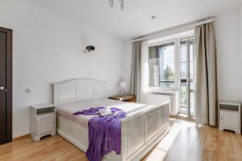В спальне — лоджия с остеклением в пол, много света и воздуха.