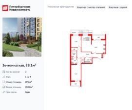 Уникальная, функциональная европланировка, большая кухня-гостиная 15.3 м², просторная прихожая 13.32 м². Общая площадь квартиры - 89.1 м², жилая 28.68 м², высота потолка 2.77 м.