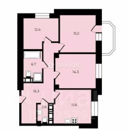 -Три изолированные комнаты 12,4+15,2+14,3 м2;