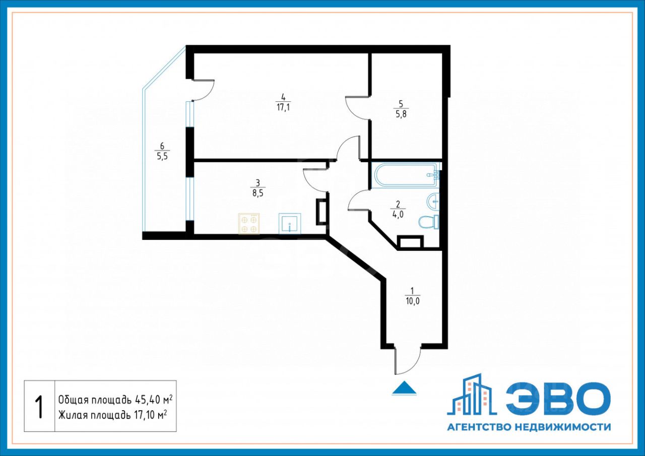 общая площадь квартиры 45,4 кв. (без учёта балкона)
