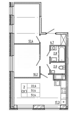 Общая площадь51,4 м²