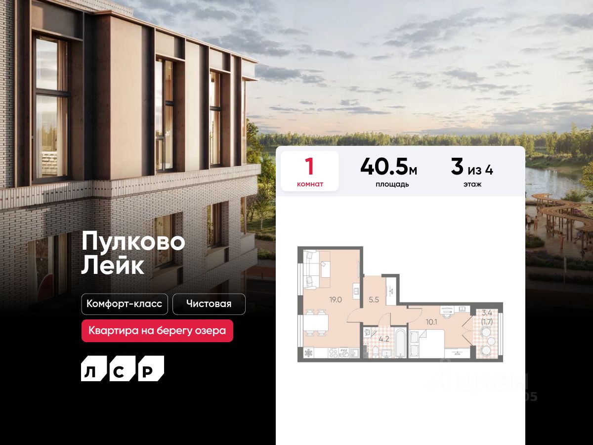 Продается 1-комнатная квартира в ЖК "Пулково Лейк" на 3 этаже. Общая площадь составляет 40.50 кв. м. Квартира с чистовой отделкой. Жилой комплекс "Пулково Лейк" располагается по адресу Санкт-Петербург, Московский.