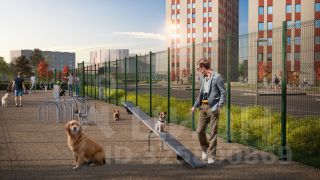 В зелёных и облагороженных дворах есть всё и для семей с детьми: тематические площадки, детский сад и даже школа. Комфортная среда для питомцев - еще одно преимущество "Октябрьской набережной": рядом с домами находится площадка для выгула собак.