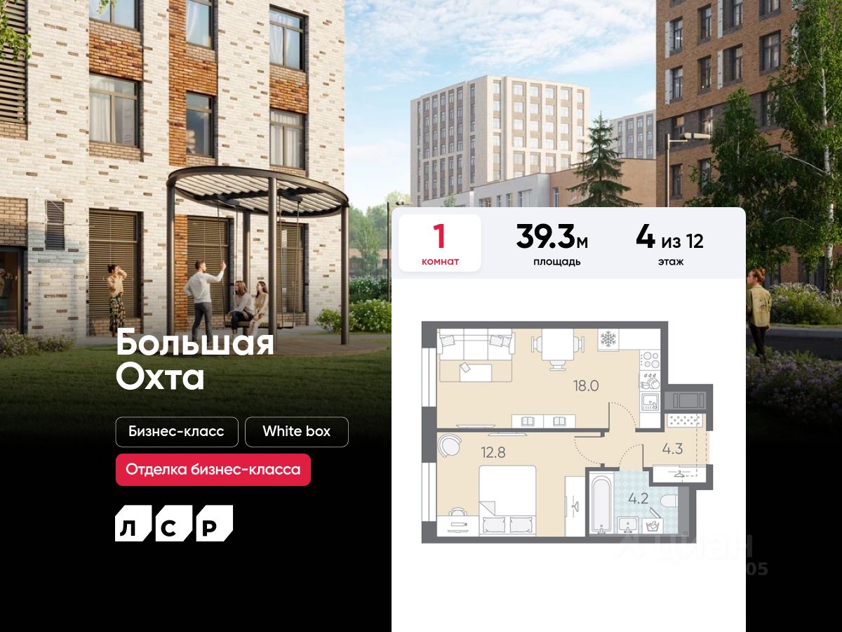 Продаётся 1-комнатная квартира в ЖК "Большая Охта" на 4 этаже. Общая площадь составляет 39.30 кв. м. Квартира с white box отделкой. Жилой комплекс "Большая Охта" располагается по адресу Санкт-Петербург, Красногвардейский.