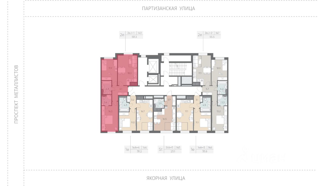 "ЛСР. Большая Охта" - проект бизнес-класса, в Красногвардейском районе между Якорной и Партизанской улицами, рядом с центром Петербурга. Престижный комплекс с удобной пешеходной и транспортной доступностью. Особенности квартиры высокие потолки и увеличенные окна.