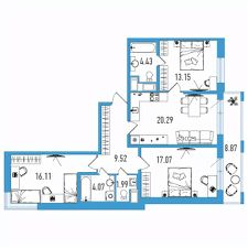 Продаётся 3-комнатная квартира в строящемся доме (Дом 1), срок сдачи: II-кв. 2027, общей площадью 89.29 кв.м., на 14 этаже.