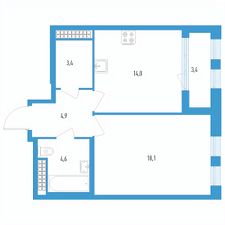 Продаётся 1-комнатная квартира в строящемся доме (Секции 15 и 16), срок сдачи: II-кв. 2026, общей площадью 46.7 кв.м., на 21 этаже.