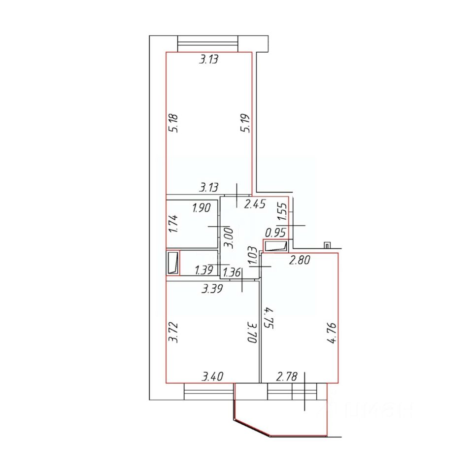 - Жилая площадь: 31 кв. м.