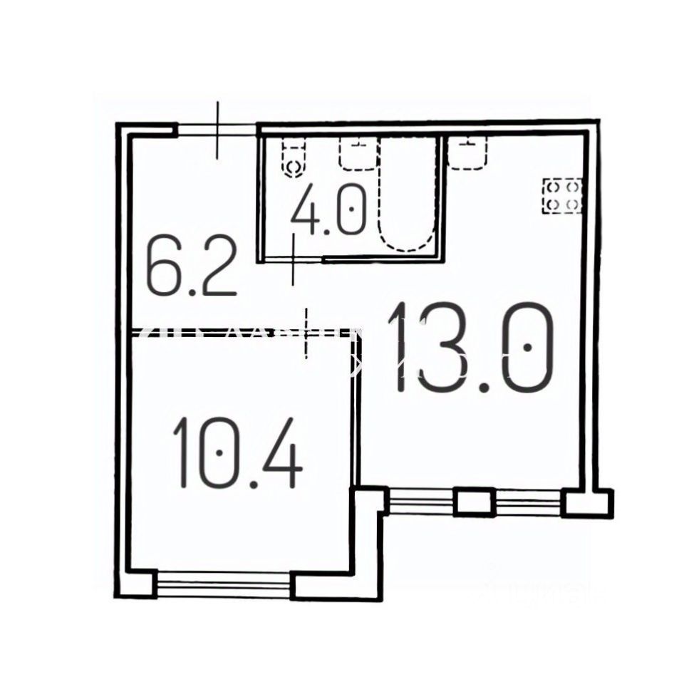 - Спальная комната (10.4м²) ПРАВИЛЬНОЙ формы, что позволяет удобно расставить мебель.