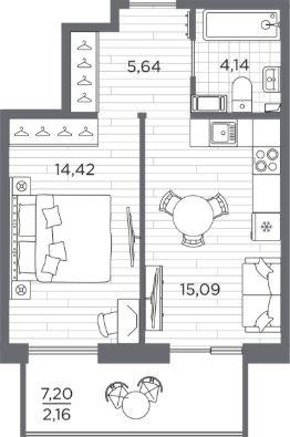 1-комн. квартира, 41,45 м²