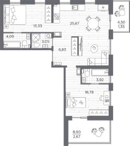 2-комн. квартира, 77,89 м²
