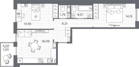 2-комн. от 54,22 м²