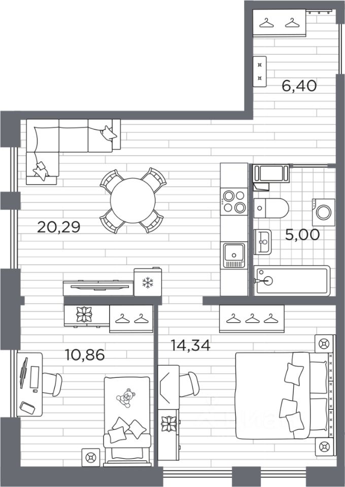 Продаётся 2-комнатная квартира в строящемся доме (Дом 6.3.1), срок сдачи: II-кв. 2028, общей площадью 56.89 кв.м., на 2 этаже.