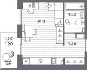 Студия, 29,22 м²