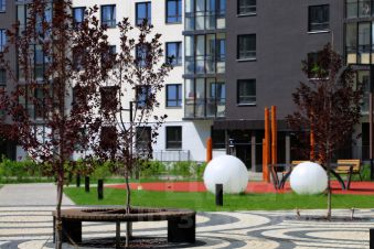 Дворы закрыты от машин, что обеспечивает безопасность детей и взрослых. Для семей с детьми особенно удобно наличие детского сада и школы прямо во дворе комплекса.
