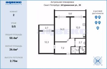 Общая площадь: 50,4 кв.м.