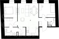 В продаже 1-комнатный апартамент 71,86 м2 со свободной планировкой и высокими потолками 3,3 м до верхней части перекрытия.