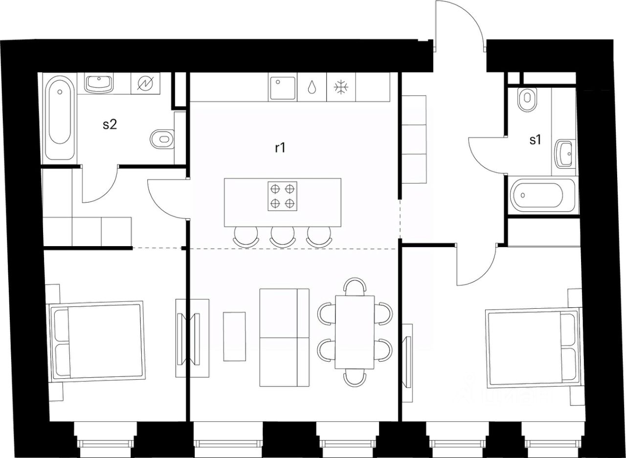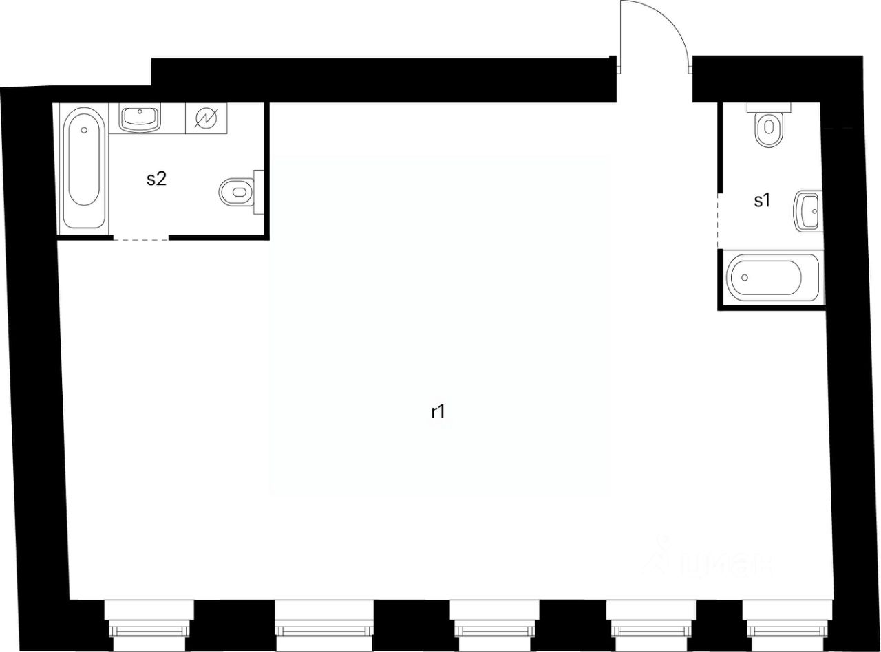 В продаже 1-комнатный апартамент 78,3 м2 со свободной планировкой и высокими потолками 3,3 м до верхней части перекрытия.