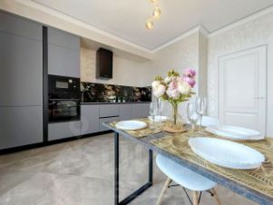 - Произведен дизайнерский ремонт, использовались материалы класса люкс. На стенах в кухне-гостиной венецианская штукатурка, на пол уложен керамогранит. Зонированный теплый пол в сан.узлах, прихожей, кухне-гостиной, лоджии.