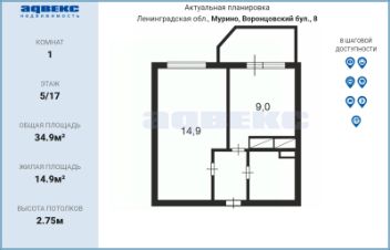 34,9 м²