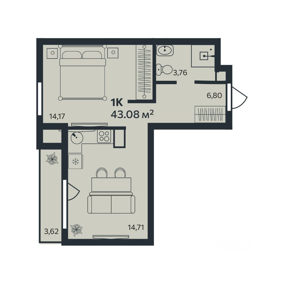 Продаётся 1-комнатная квартира в строящемся доме (Корпус 1), срок сдачи: III-кв. 2026, общей площадью 43.08 кв.м., на 5 этаже. Новый жилой комплекс "Эдельвейс. Янино" от застройщика "ГК Эдельвейс" расположен по адресу: Россия, Ленинградская область, Всеволожский район, Заневское городское поселение, пос. Янино-1, Шоссейная улица
